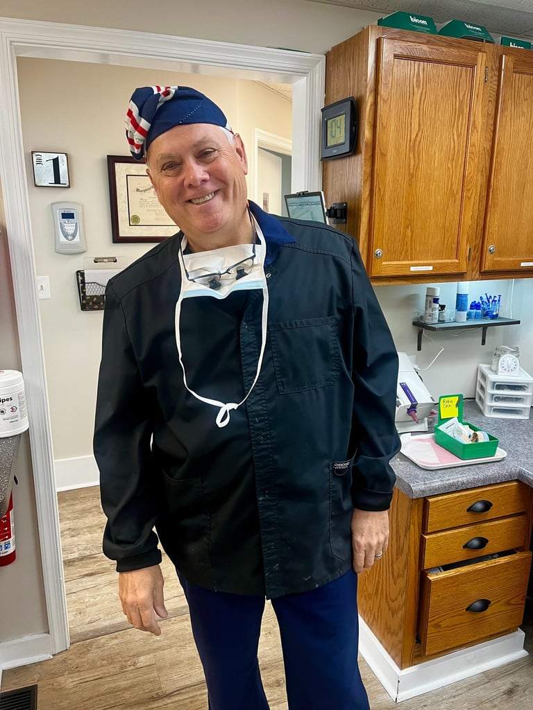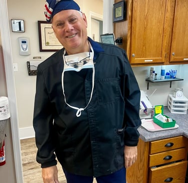 After graduation, Dr. Wright joined the US Navy. There, he received advanced training in a wide variety of dental subjects, including oral diagnosis, periodontics (gum disease), endodontics (root canals), oral surgery, surgical anesthesia, advanced cardiac life support, and advanced traumatic life support. After working in a private practice for 10 years, Dr. Wright accepted a position at the Veterans Administration Medical Center in Washington DC. In addition to treating dental patients, he served on the hospital's Infection Control Committee and was a member of the Medical Center's Chemical and Biological Decontamination team.